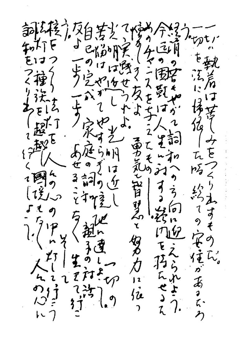 今世も又縁にめぐり合いたることを 神に感謝致し